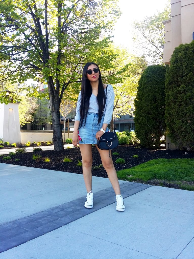 Hi beauties, I have to confess I'm hardly for sneakers or tennis. I took advantage of last weekend to go out shopping. I passed this store, Zumiez, where they sell sports and casual clothes. Among the tennis I found these white Vans with side grilles, I tried them, I liked them and even more when the time came to pay and were half price. As for my look I used these sneakers with this embroidered mini denim skirt, they are certainly the perfect match. To complete this outfit I just added a gray top, as for accessories, my sunglasses and a small bag. Maybe they are no longer available because they were on sale but I share a link of a model very similar. Goodbye and greetings to all.